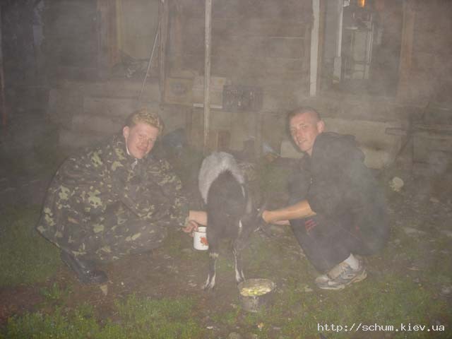 Два близнеца доят козу